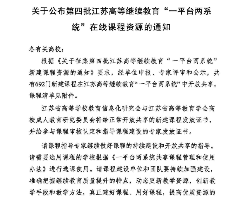 学校20门课程资源获批第四批江苏高等继续教育“一平台两系统”在线课程资源认定