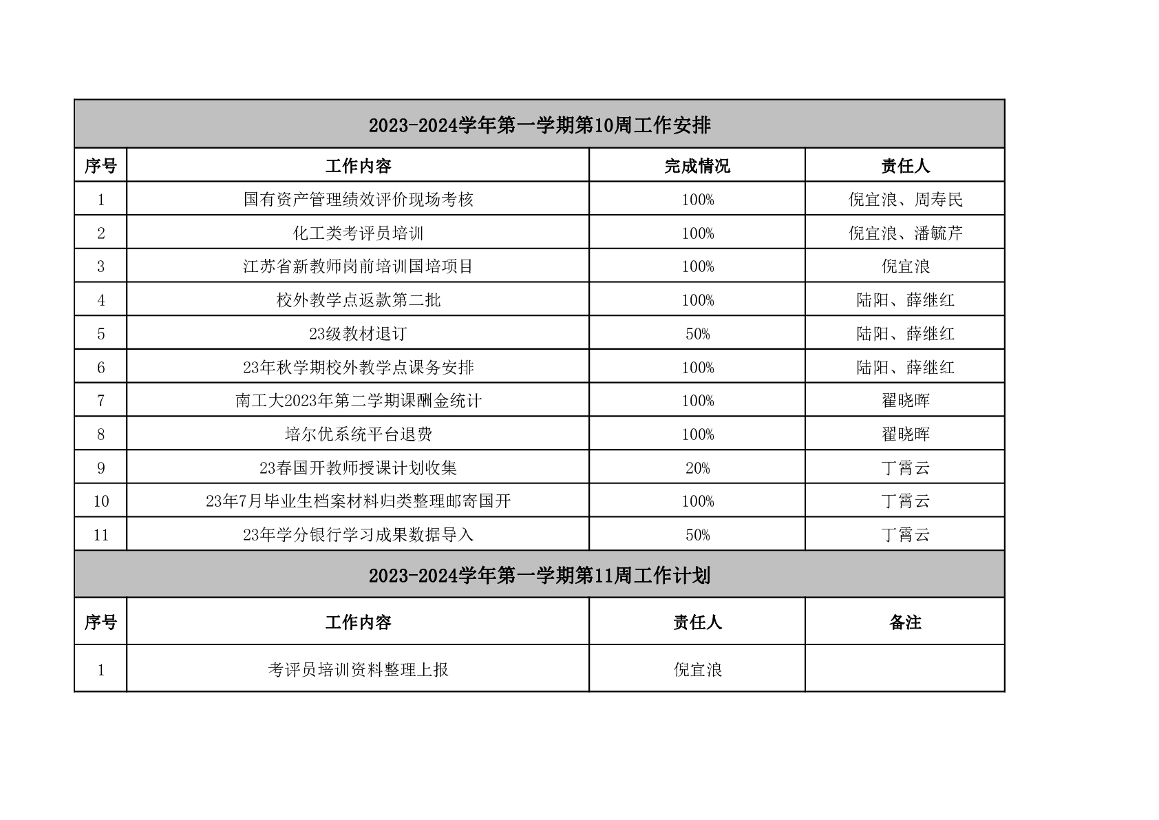 2023-2024学年第一学期第11周工作安排