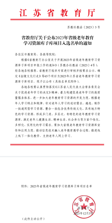 我校2个项目入选2023年江苏省老年教育学习资源库子库
