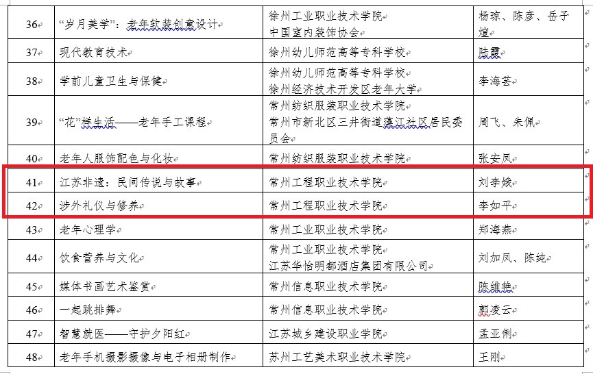 近日,江苏省教育厅公布 2023年省级老年教育学习资源库子库项目入选名单的通知(苏教继函〔2023〕3号)。我校申报的“江苏非遗:民间传说与故事”和“涉外礼仪与修养”成功入选2023年度省级老年教育学习资源库子库项目。