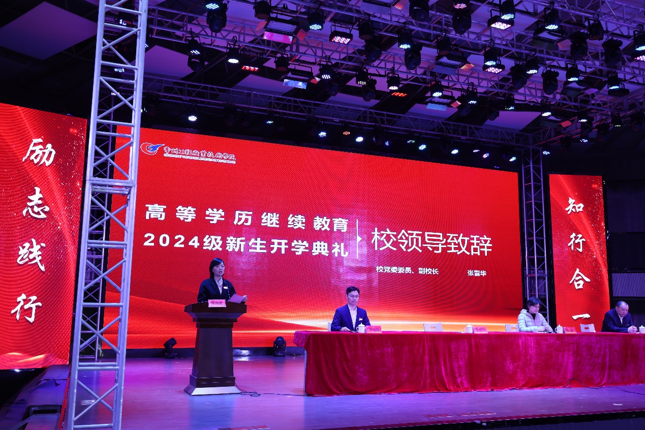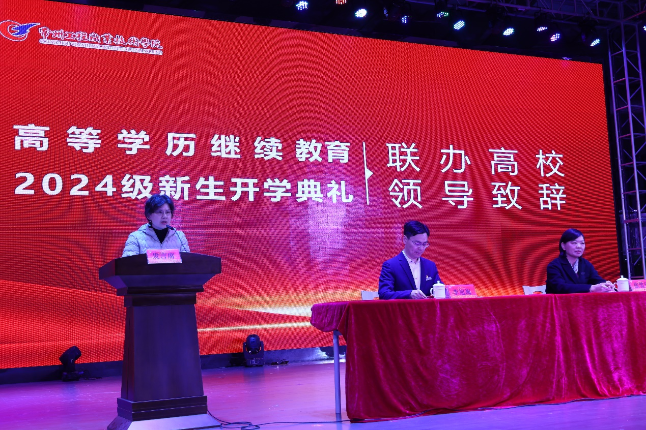刘沫代表联办本科高校南京工业大学继教院致辞,她首先从五个维度介绍了南京工业大学的发展历史和基本情况。她希望同学们要胸怀理想,充满自信;养成习惯,终身学习;克服困难,持之以恒。