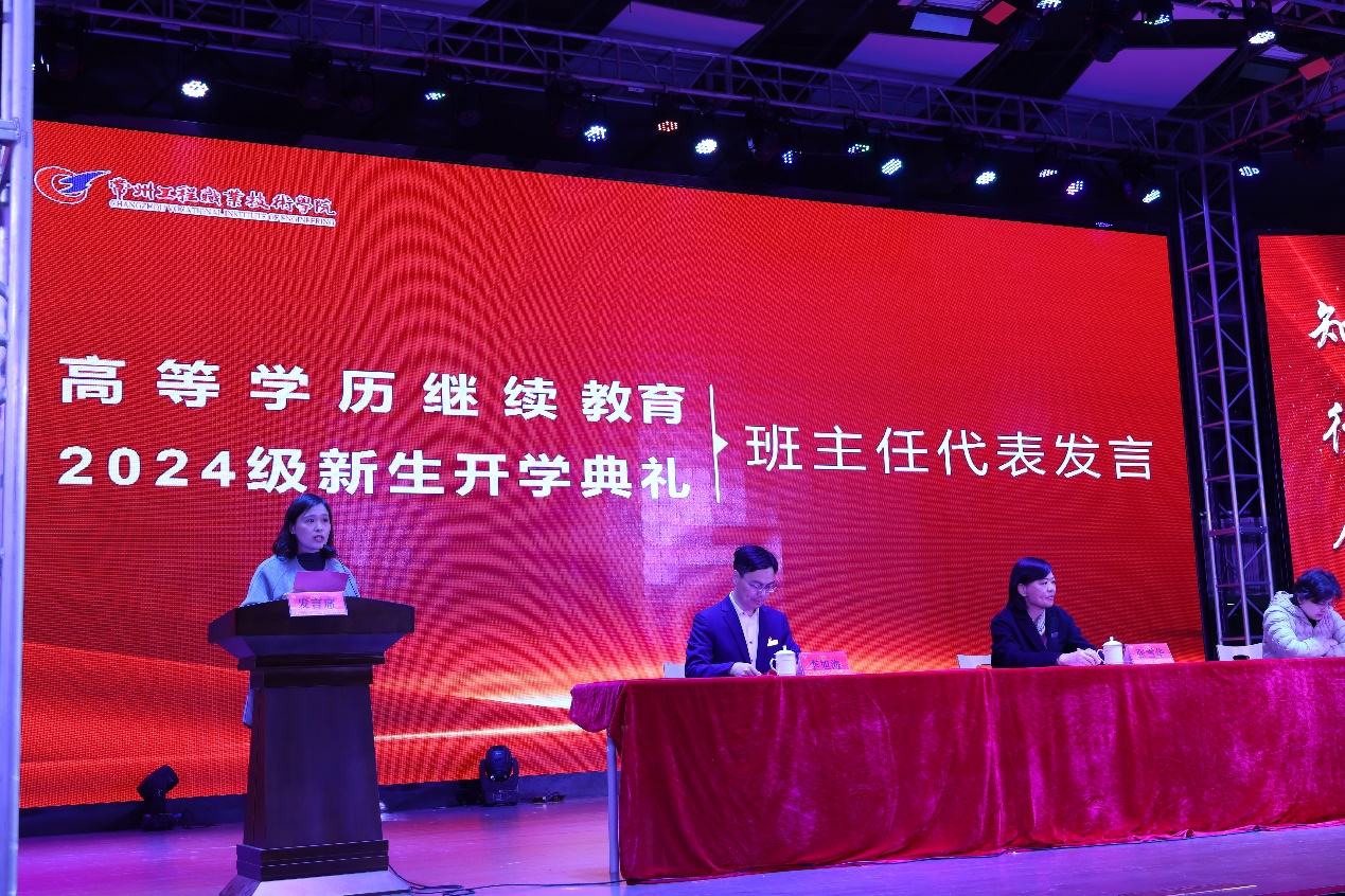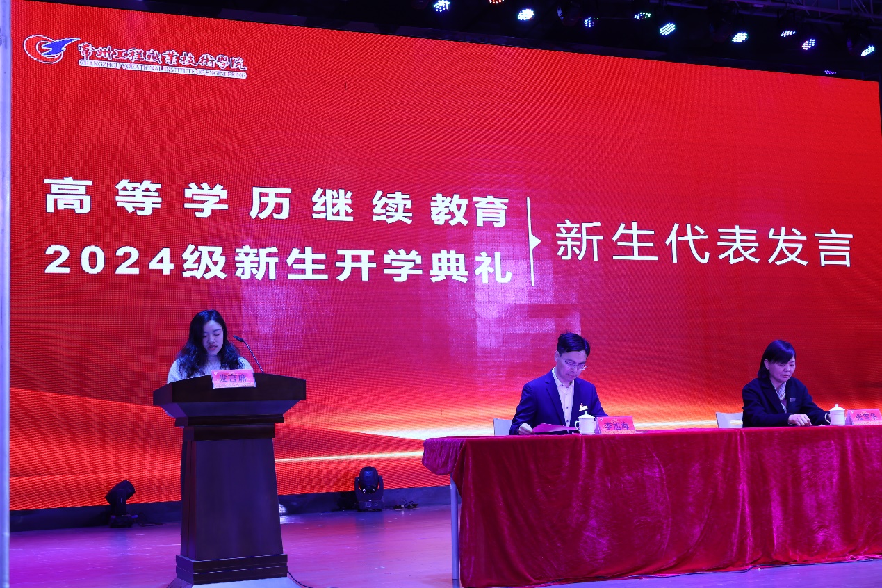 24级新生代表国际商务班朱红梅向全体新生发出倡议,号召大家养成良好的学习习惯,掌握学习方法,为终身学习积蓄力量。谨记校训精神,以新时代奋斗者的姿态,不忘初心,砥砺前行。班主任代表翟晓晖老师希望在座的新生,养成自主学习、立即行动、常怀感恩的好习惯,奋力跑出逐梦的“加速度”。