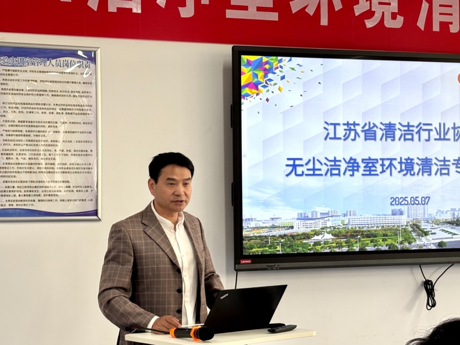 5月7日,我校与江苏省清洁服务行业协会共同主办的全国首期无尘洁净室环境清洁专项技能培训在我校开班。江苏省总工会副主任苗建东、江苏清协会长孙小军、秘书长关承洋,学校党委委员、副校长张雪华、继教院院长李旭海、副院长吴亚伟出席开班仪式。全省近30家企业的负责人参与培训,开班仪式由吴亚伟主持。